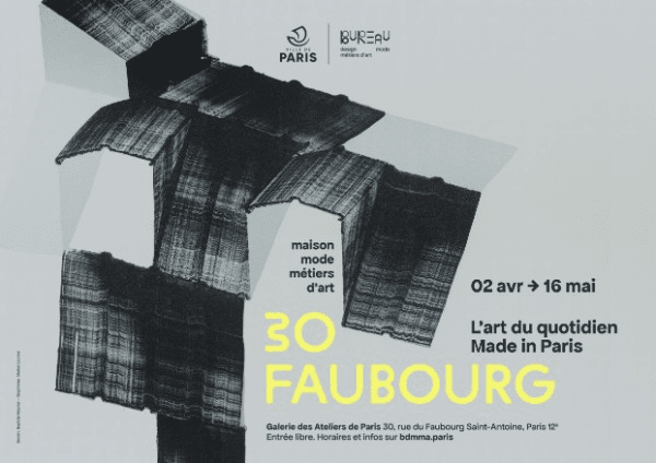 Le Bureau du Design, de la Mode et des Métiers d’art présente 30 Faubourg - l'art du quotidien Made in Paris. Pensée comme un concept store, l’exposition présente une sélection de pièces exclusivement fabriquées dans des ateliers parisiens. Le projet imaginé par SINOPLE invite à découvrir une génération d’artisans qui s’emparent des sujets de création contemporaine et de consommation responsable.Par un dialogue original entre les métiers d’art et de nouveaux modes de consommation, cet événement réaffirme la place singulière des artisans d’art dans la ville : une place historique, économique et culturelle mais plus que jamais vivante, faisant de Paris leur épicentre. 🖼️ Exposition : jusqu'au 16 mai📍 30 rue du Faubourg Saint-Antoine🎟️ Entrée libre de 10h à 18h30 du mardi au vendredi et de 14h à 19h le samedi.En savoir plus ­ Nos actualités / Journées Européennes des Métiers d'Art : Découvrez notre programme Save the date à l'occasion des Journées Européennes des Métiers d'Art prévues du mardi 7 au dimanche 12 avril : les résidents des Ateliers de Paris ouvrent leurs portes le vendredi 10 et le samedi 11 avril. Les portes ouvertes sont une occasion unique de visiter les espaces de travail des résidents et d'échanger avec ces jeunes professionnels du design, de la mode et des métiers d'art. À Bastille, 30 rue du Faubourg Saint-Antoine, 75012 Paris : Florence Moorhead, Sarah-Madelaine Bru, NORMANMABIRELARGUIER, Shoeshoe, Lucas Bauer, Clémence Althabegoïty, Selah Creative Office, Kevin Lebouvier, Studio BehaghelFoiny et Lucien Icard. À Faidherbe, 28 rue Faidherbe, 75011 Paris : Sonney, Cachi, Maison Douillet, Boscoier, Mona Margaux, Hugo Falaise, Apolline Morel-Lab, Laure Philippe, Studio poirier bailay, Victoire de Brantes, Studio Pile, Wilfried Becret, Hanako Stubbe, Font&Romani et Miyouki Nakajima. 🚪 Portes Ouvertes : Vendredi 10 et samedi 11 avril, de 14h à 19h, entrée libre, sans réservation📍 30 rue du Faubourg Saint-Antoine & 28 rue FaidherbeEn savoir plus Hors les murs / Exposition Quasi- de Miyouki Nakajima­ La galerie Une Fille aux Cheveux Noirs présente des œuvres textiles de Miyouki Nakajima, à la fois sculpturales et murales, ainsi que trois luminaires réalisés en collaboration avec Wilfried Becret (artisan et designer) et Wilfried Rouissi (marbrier et designer). 📍 Une Fille Aux Cheveux Noirs, 11 Rue du Perche, 75003 Paris 🗓️ Du mercredi 15 au samedi 25 avril 2026, de 11h à 19h. En savoir plus Hors les murs / Exposition Resurgences, Alexis Foiny (Studio BehaghelFoiny), Lauréat du Prix Flair pour l’Art Olfactif Du 28 mars au 12 avril, la Galerie Derouillon accueille Resurgences, l’exposition personnelle d’Alexis Foiny, lauréat de la troisième édition du Prix Flair pour l’art olfactif.À travers une installation olfactive conçu par le studio BehaghelFoiny, l’artiste explore la solastalgie (la détresse liée à la dégradation d’un milieu naturel) en prenant pour point d’ancrage le Bois puant (Foetidia mauritiana), arbre endémique de Maurice et de La Réunion aujourd’hui en danger critique d’extinction.En transformant l’olfaction en outil d’archivage sensible, Resurgences interroge nos manières de conserver le vivant et entre en dialogue avec les recherches du Conservatoire Botanique National de Mascarin et du musée Tillequin. 📍 Galerie Derouillon, 38 rue Notre-Dame de Nazareth, Paris 3e 🗓️ Jusqu’au 12 avril 2026 En savoir plus ­ Hors les murs / Les salons Céramique 11 L’association Terramicales organise la dix-huitième édition du Festival de céramique de Paris 11e, du 10 au 12 avril 2026. Cet évènement est devenu un rendez-vous majeur pour les professionnels, les étudiants et tous les passionnés de céramique, praticiens amateurs comme collectionneurs. La 18e édition du festival vous invite à un voyage sur L’EAU ! Avec une installation participative, des contes, des projections de films, des conférences… entourés d’artistes de la terre, nous vous convions à la célébrer. Rendez-vous du 10 au 12 avril au 15 rue Merlin, 75011 Paris.En savoir plus ­Appel à candidatures / Avril ­­Les Grands Prix de la Création de la Ville de Paris Les Grands Prix de la Création de la Ville de Paris distinguent les talents créatifs, actuels ou émergents, du monde du design, de la mode et des métiers d’art. Ils récompensent 8 lauréats : 3 Prix Révélation, 3 Prix Engagement, dans chaque discipline, design, mode et métiers d’art, 1 Prix Accessoires Mode et 1 Prix Accessoires Bijoux. 🗓️Candidatures ouvertes jusqu'au 20 mai 2026.En savoir plus­Rejoignez l'incubateur Les Ateliers de ParisL'appel à candidature incubateur les Ateliers de Paris est ouvert ! Créé en 2006, l’incubateur Les Ateliers de Paris est dédié au développement des entreprises de création dans les secteurs du design, de la mode et des métiers d’art qui allient créativité, innovation et engagements. 🗓️Candidatures ouvertes jusqu'au 16 avril 2026.­En savoir plusICC Immersion Japon est un nouveau programme d’accompagnement à l’export pour les industries culturelles et créatives, piloté par l’Institut français et Business France. Succédant au Creative Lab Japon qui a soutenu 35 entreprises entre 2022 et 2025, ce dispositif aide les professionnels français à intégrer un marché nippon prestigieux mais exigeant. Le programme se décline en deux filières : les Industries de l'image et le Design et métiers d’art. 🗓️Candidatures ouvertes jusqu'au 6 mai 2026.En savoir plus­ ­Accompagnement / Les formations d'avril/mai Maîtriser la communication pour donner de l'élan à son projet - Lundi 13 avrilStratégie de collection : une méthode pour donner de la cohérence à son offre et mieux vendre - Jeudi 16 avrilOutils de pilotage - Lundi 4 mai Instagram et Pinterest - Mardi 5 maiVendre au bon prix - Mardi 19 maiS'inscrire­Portrait de 
